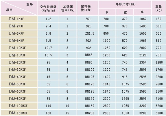 ◆ 微熱再生吸附式壓縮空氣干燥機(jī)參數(shù):
