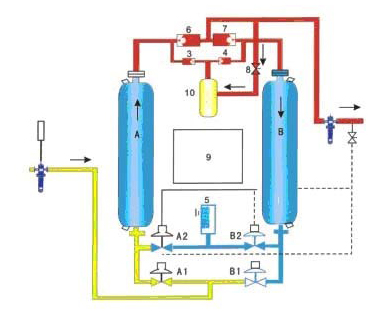 ◆ 微熱再生吸附式壓縮空氣干燥機(jī)工作原理: